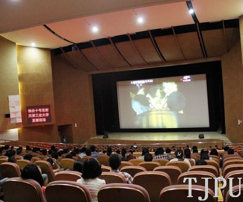 6月11日17时38分,中国长征二号F运载火箭在酒泉卫星发射中心载人航天发射场点火起飞,将神舟十号载人飞船发射升空。中国航天员聂海胜、张晓光、王亚平搭乘神舟十号飞船出征太空。我校党委副书记杨吉棣、校团委副书记蔡金清及600多在校学生在艺缘活动中心礼堂观看了发射全过程。当中央军委委员、任务总指挥长、总装备部部长张又侠宣布发射取得圆满成功的那一刻,大家热烈鼓掌为之喝彩,为之欢呼。