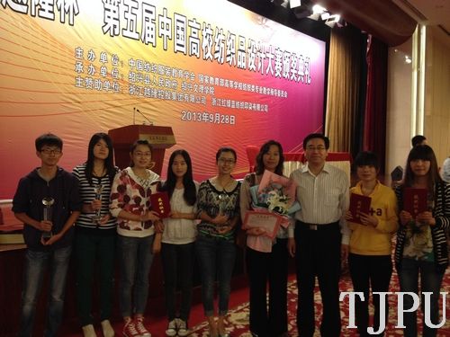 我校纺织学部学生设计的多部作品获奖,其中周君的作品“蒂芙尼的早餐”(指导老师:张毅、荆妙蕾)获“数码印花织物花形组”一等奖;孙灿的作品“彩虹梦”(指导老师:张毅、荆妙蕾)获“数码印花织物花形组”二等奖;王佳璐的作品“花样年华”、陈佳佳的作品“青花”(指导老师:张毅、荆妙蕾)获“大提花织物花形组”二等奖;侯丙昕的作品“动与静”、贾小青的作品“雪山”(指导老师:匡丽赟、徐磊、徐秀萍) 获得“针织服用织物组”二等奖;景媛媛的作品“所想”(指导老师:匡丽赟、徐磊、徐秀萍)获得“家纺装饰用织物组”三等奖;王欢、刘文婧的作品“典影”(指导老师:荆妙蕾、张毅)获特别单项奖“最佳材质组合奖”,此外学生作品获优胜奖29项。我校被评为“越隆杯”第五届中国高校纺织品面料设计大赛和“红绿蓝”杯第二届中国高校纺织品花形设计“最佳组织单位奖”,荆妙蕾、张毅、匡丽赟、徐秀萍、徐磊5位教师被评为“优秀指导教师”。