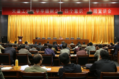 为深入宣传贯彻党的十八届六中全会精神,根据市委宣传部《关于做好牢固树立“四个意识”主题宣讲工作的通知》要求和市委教育工委工作部署,421日上午,我校在学术中心召开牢固树立“四个意识”主题宣讲会。全体在校校领导出席,学校全体处级干部参加。校党委书记连洁主持会议并做主题宣讲。