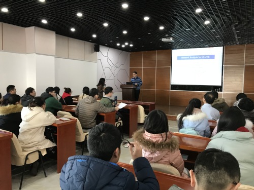 20171219日上午,美国卡内基梅隆大学统计与数据科学学院金家顺教授,应邀在计算机科学与软件学院C510报告厅作了题为《基于SCORE的网络分析》的学术报告。计算机科学与软件学院院长汪剑鸣教授、副院长裴永珍教授等老师及硕士研究生们聆听了金教授的精彩报告。报告由裴永珍副院长主持。