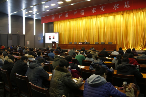 2018年1月5日下午,乐动在线登录“泮湖讲堂”之学习贯彻党的十九大精神系列报告会在学术中心举行。我校杨永利教授应邀作了题为《中国特色社会主义的“四位一体”——道路、理论体系、制度、文化》的报告。校领导杨庆新、刘亚男出席,全体中层干部、党校青年骨干教师培训班全体学员、第2期党支部书记(教师)培训班学员、党外人士代表等近300人参加。报告会由党委宣传部部长王军杰主持。