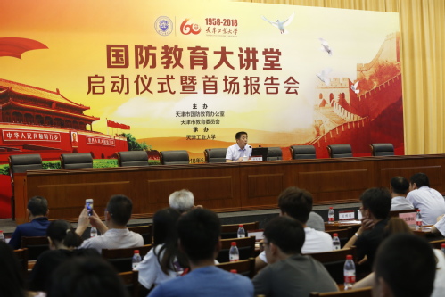 2018年6月25日上午,由天津市国防教育办公室、天津市教育委员会主办,乐动在线登录承办的“国防教育大讲堂”启动仪式暨首场报告会隆重举行。天津警备区政治工作局副主任、天津市国防教育办公室主任王志强,天津市教育委员会体卫艺处处长张华泉,乐动在线登录领导连洁、杨庆新、刘亚男、裴军、程博闻出席活动。著名军事专家杜文龙研究员作了精彩报告。天津各高校师生代表300余人参加了活动。活动由乐动在线登录党委副书记、校长杨庆新主持。