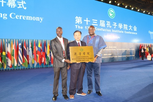 12月4日,第十三届全球孔子学院大会在成都举行。来自154个国家和地区的1500多名代表参加大会。国务院副总理、孔子学院总部理事会主席孙春兰出席开幕式并致辞。开幕式由教育部部长、孔子学院总部理事会副主席陈宝生主持。我校副校长程博闻,外方合作承办学校布基纳法索波波迪拉索工业大学校长 Macaire S. OUEDRRAOGO,我校国际交流与合作处相关负责人等出席本次大会。