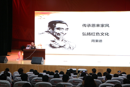周秉德先生以亲人的独特视角,用一幅幅珍贵的历史照片与亲身经历,以家风为主题,饱含深情地讲述了周恩来总理与邓颖超同志的革命情感,周恩来总理生活简朴、公私分明,教育亲属不可特殊化,国家利益为上、热爱祖国和人民的点点滴滴。讲到情深处,周先生数度哽咽,整场讲座持续近两个半小时,现场师生多次自发响起持久的、热烈的掌声。