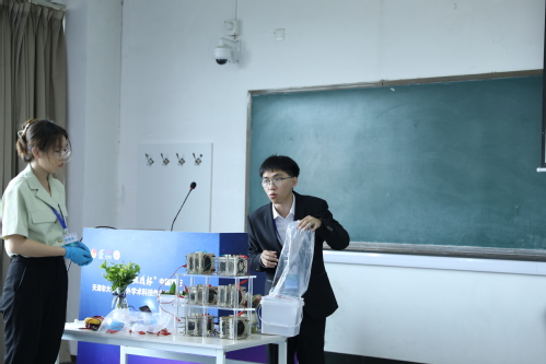 终审决赛采用“作品陈述+评委问辩”的方式进行。在现场,各参赛学生通过PPT展示团队项目,从项目内容、创新要点、成果转化等方面进行了全方位阐释。现场学术氛围浓烈,充分展现了青年学子良好的精神风貌、多元化的视野、无限的未来创造与高涨的创新激情。