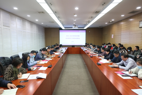 12月27日,我校在会议中心第五会议室召开2023年秋季学期本科教学工作期末部署会。副校长刘义出席会议并讲话,各教学单位主管教学工作副院长(副主任)、教学办主任以及教务处相关人员参会。教务处处长王春红主持会议。