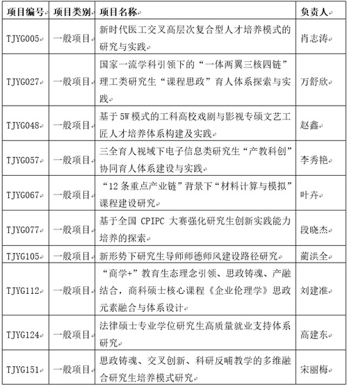 天津市高等学校研究生教育改革项目是为认真贯彻习近平总书记关于教育强国重要论述,落实“科教兴市人才强市”行动方案,推动我市高校主动调整学科建设方向,实现学科链、科技链、人才链融合共通,提高我市研究生教育对天津市经济发展适配度,助力我市先进制造业研发基地建设的重要举措。