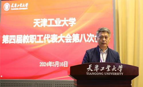 日前,我校第四届教职工代表大会第八次会议在学术中心召开。全体在校校领导、校教代会代表、列席代表参加会议。大会由校党委副书记胡英江主持。