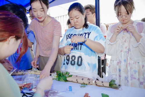 “马上端午节啦,今年我和室友们打算在学校过节,正好做一个艾草花束,回去就挂在宿舍门口。”参加活动的学生说道。为了让广大学生更加深入了解端午节的文化习俗,活动现场还设置了多个游戏互动区,学生们用五彩绳编织出精美的手链和挂饰,火遍全网的“漆扇”制作和刺激的“投‘粽’你”游戏展位前更是络绎不绝。