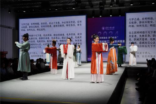 此外,作为本次展览一大亮点的动态成果展于6月13日举行,该展由学校师生策划演出,创编的节目聚焦艺工融合、医工融合、劳动育美、文化创新等理念,生动展现了新工科建设改革的育人成果。节目内容既包括智能可穿戴、工业材料表演性发光等多学科艺工结合的服装设计,又展示了无人机载救援系统、生命救治胶囊仓等医工融合的生动场景,现代动画技术演绎中华优秀传统文化、劳动教育成果展演、产教融合音诗画表演令人印象深刻。