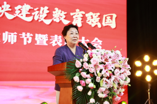 沈江书记代表学校党委向受表彰的单位和同志们表示热烈的祝贺!向从事教育工作满三十年和光荣退休的老师们致敬!向辛勤耕耘在教学科研一线的广大教师和在各个岗位上默默奉献的教育工作者,致以节日的问候!随后,沈江书记开展师德宣讲,对我校广大教师和教育工作者提出三点希望:一是弘扬教育家精神,强化使命担当;二是潜心教书育人,争做新时代良师;三是涵养高尚师德,永葆师者本色。她号召广大教师和教育工作者切实增强服务教育强国建设的政治自觉和历史主动,以赤诚之心、奉献之心、仁爱之心投身教育事业,以德立身、以德立学、以德施教,努力培育一流人才、创造一流成果、作出一流贡献,为中国式现代化和教育强国建设作出“天工之为”,贡献“天工力量”。