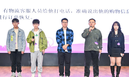 这是全市高校中首次开展的网络素养综合能力赛事,大赛创新性设计了海报设计、网络心理研判、网络舆情分析应对、朋友圈发布技巧、诱骗防骗对决、网络热词对决等6大比赛项目。海报设计项目重点以《文明用网,切勿“按键伤人”》《打破“信息茧房”,拓宽认知视野》等内容展开设计,通过强烈的视觉效果、独特的创意元素,吸引观众产生情感共鸣。朋友圈发布技巧项目,参赛师生集思广益、紧扣主题,用独特视角和流畅文笔,传递向真向善向美的力量。网络热词对决项目,“泰裤辣”等时下热门词汇搬上了舞台,参赛选手通过情景化阐释,展开热词释义能力和实际应用场景解读。此外,网络心理研判、网络舆情分析应对、诱骗防骗对决项目气氛热烈,来自15个学院的17支师生团队用他们精湛的演技为观众呈现了8部网络电信诈骗诱骗防骗情景剧,参赛师生将网络知识与思政元素巧妙融合,通过声情并茂的现场展示,从生活中的一条诈骗短信、一次典型事例、一段新闻时事等作为切入点,展开分析和对决,现场掌声阵阵、笑声不断。