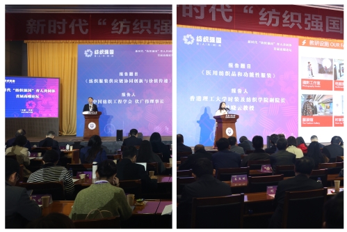 在共同体首届高端论坛上,中国纺织工程学会理事长伏广伟、香港理工大学时装及纺织学院副院长叶晓云教授分别以“纺织服装供应链协同创新与价值传递”、“医用纺织品和功能性服装”为题作主题报告。
