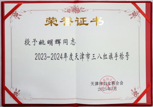 我校姚明辉教授荣获天津市三八红旗手荣誉称号