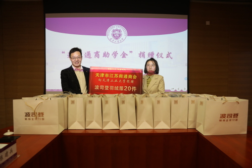 随后,天津市江苏南通商会、学校基金会、环境科学与工程学院负责同志共同签订三方协议。继2024年底向我校捐赠24.1万助学金后,活动现场,天津市江苏南通商会又向我校捐赠20件暖冬物资,天津市江苏南通商会副会长张新中、张靖奇父子还追加了6000元助学金。张靖奇先生表示,要传承发扬南通企业家的教育情怀,常怀赤子之心,希望能够通过“天津通商助学金”,给年轻孩子们以精神支持,让“张謇精神”焕发新时代的生机与活力。