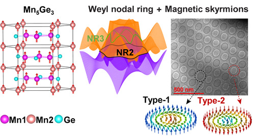 上述结果表明:Mn5Ge3是一种兼有拓扑能带和拓扑自旋结构的磁性拓扑材料。同时该材料具有较宽的成相区间,这也为深入研究上述两种拓扑物态之间的关联机制及其调控规律提供了良好的平台。相关研究成果以“Emergent Magnetic Skyrmions in a Topological Weyl Nodal Ring Semimetal”为题,近期发表在国际著名期刊《纳米快报》【Nano Letters 25, 2903 (2025)】上。