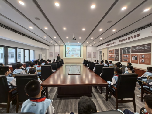 同一天,纺织科学与工程学院退役大学生士兵张明旺、查如陈携“强军记忆”走进天津市南开区阳光小学课堂,开展了一场别开生面的国家安全主题教育活动。两位退役大学生士兵结合自身入伍经历,通过直观震撼的军事图片和精心制作的科普视频,为小朋友们深入浅出地介绍了总体国家安全观的内涵和国家安全的重要性,课堂气氛活跃。阳光小学老师表示:这种“退役学子话安全”的大中小思政一体化宣教模式,既在孩子们心中播下了爱国强军的种子,也让总体国家安全观在校园落地生根。