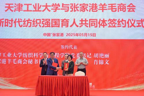 在张家港扬子精梳毛条有限公司成立30周年庆典暨张家港羊毛商会第45次羊毛沙龙上,林立刚代表学校致辞,张家港羊毛商会及全国羊毛行业企业家400余人参加会议。会上,分别举行了学校与张家港羊毛商会深化新时代“纺织强国”育人共同体建设签约仪式,纺织科学与工程学院与张家港扬子精梳毛条有限公司技术合作签约仪式。商会会长、纪前龙博士受聘经济与管理学院研究生企业导师。